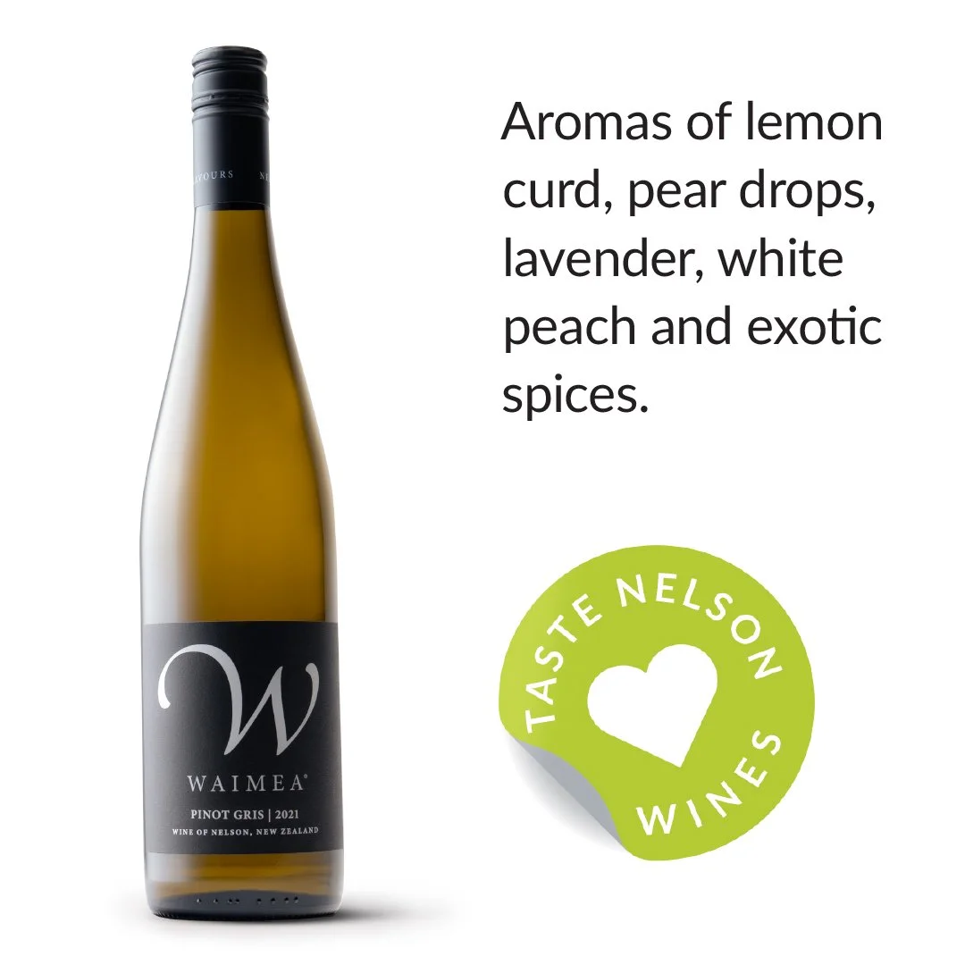 Waimea Pinot Gris offers a soft, supple entry on the palate of ripe stone fruits, rockmelon and peach, with warm toasted cinnamon and a creamy silky texture before an elegant fresh finish. $24.
